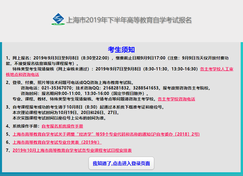 系统首页面考生须知介绍了报考相关的信息,请仔细阅读后,点击“我知道了,点击进入登录系统”