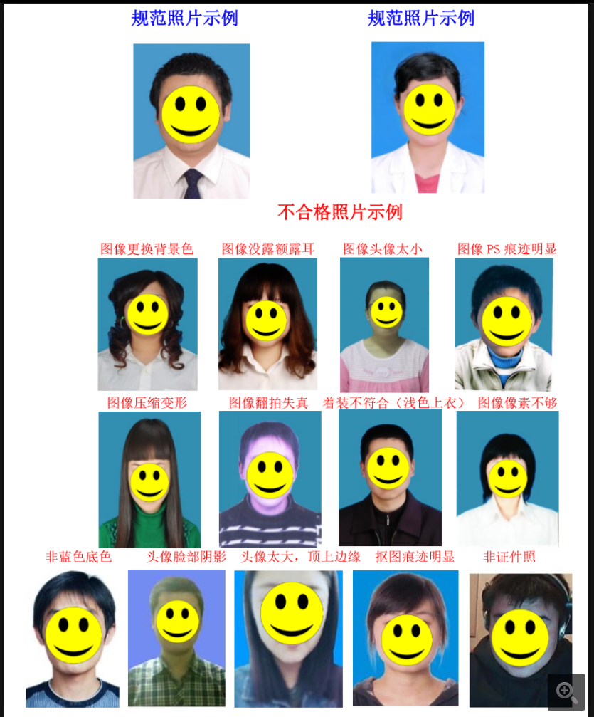 规范照片示例。照片将用于您的准考证制作、考籍管理及毕业证书制作的重要采集信息,请按规则上传。