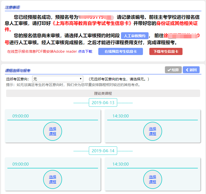 如果证件类型为“港澳台胞证”“外国人永久居留证”、所选专业为特殊专业要求、照片和个人信息审核不通过(最多审核5次上传的照片)将按要求去主考院校进行人工审核,审核通过后才能进行所选课程的缴费。其他所有信息符合要求的新考生生成准考证后,可以直接选课与缴费。