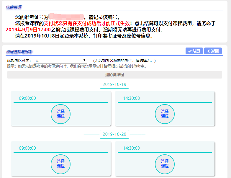 下图为在籍考生或审核通过后的新生进入选择课程与报考的页面: