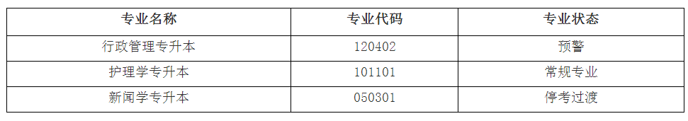 行政管理专升本专业进入预警阶段。请各位新考生谨慎报考。