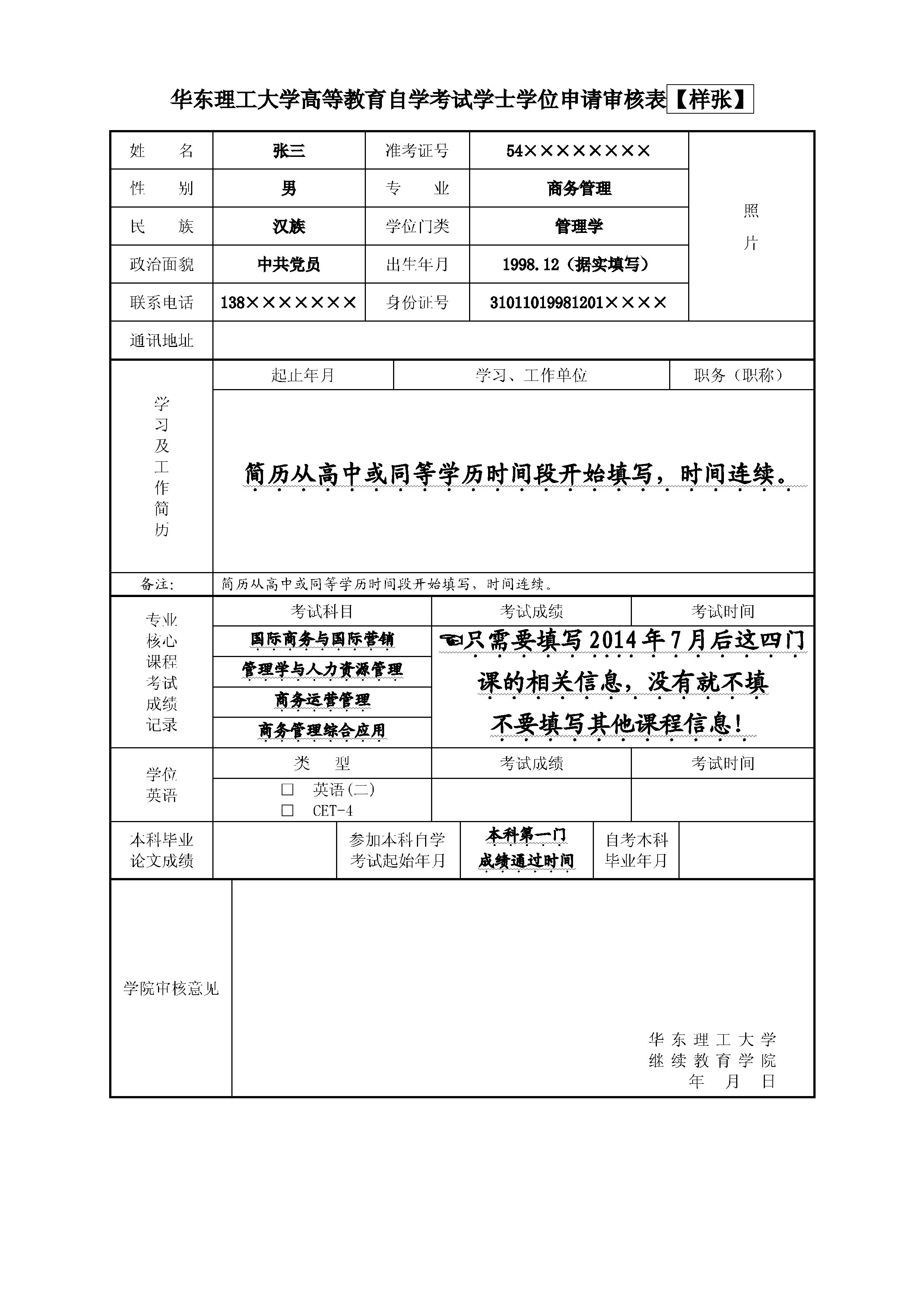 1. 黑色字迹水笔正楷填写的学士学位申请审核表1份。