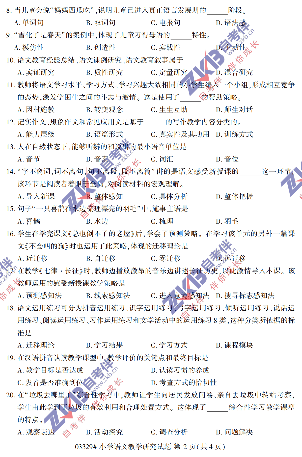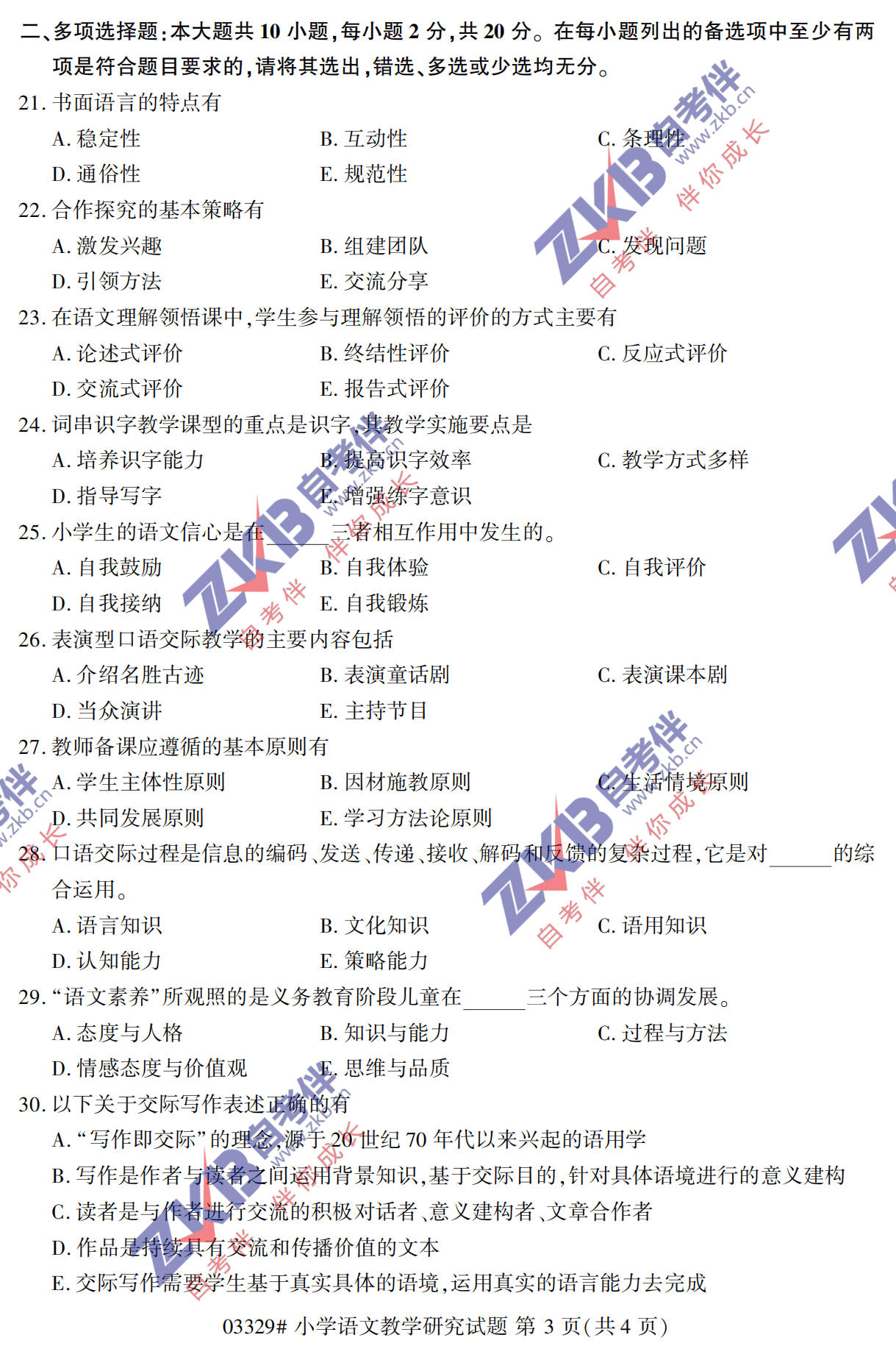 2021年10月上海自考03329小学语文教学研究真题试卷