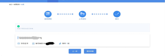 确认课程名称、凭证类型、编号无误后,点击“提交申请”按钮。