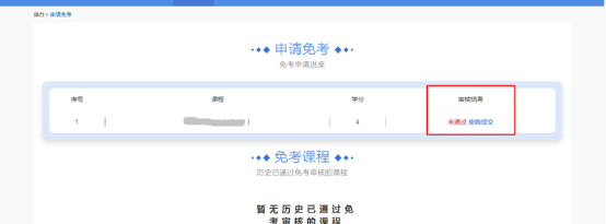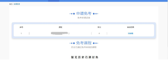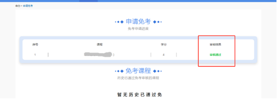 若审核通过,显示下图,表示该课程已经成功办理免考。