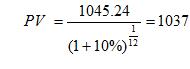 PV=79.3674+72.1519+65.5953+819.9410=1037.06(元)