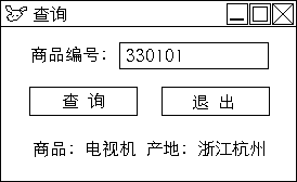 2、 功能是用户从键盘输入商品编号并单击“查询”按钮,程序从数据表SPCD.DBF中查找该商品,若找到,显示该商品的商品名称和产地,若没有找到,显示“无此编号的商品”,单击“退出”按钮,结束程序运行。
