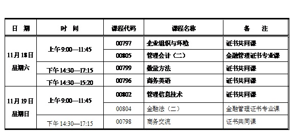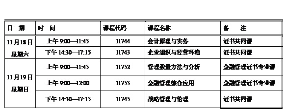 2017年下半年中英合作金融管理管理段(C020120)证书课程考试安排表