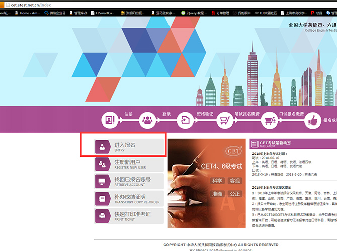 1.登录:http://cet.etest.net.cn,点击“进入报名”(提示:报名时要选择大学日语四级)