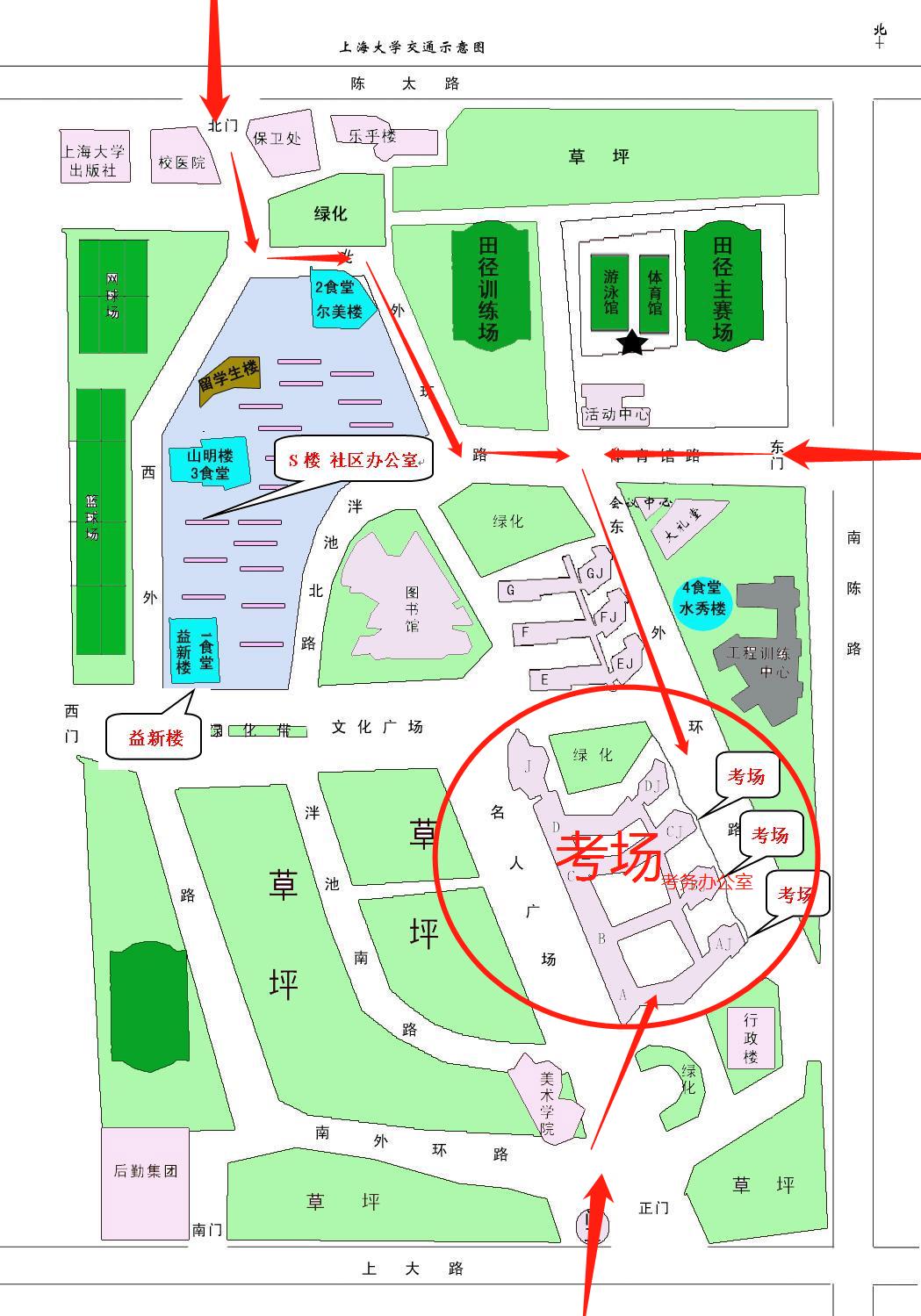 1. 上海大学考区设置在上大路99号上海大学宝山校区,考务办公室在BJ楼107室。