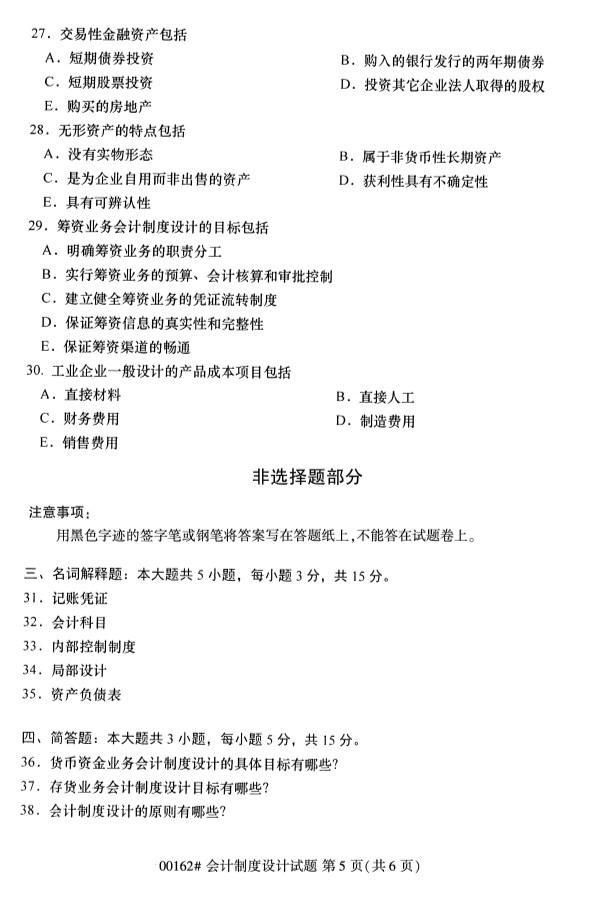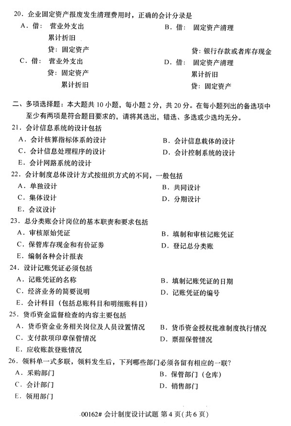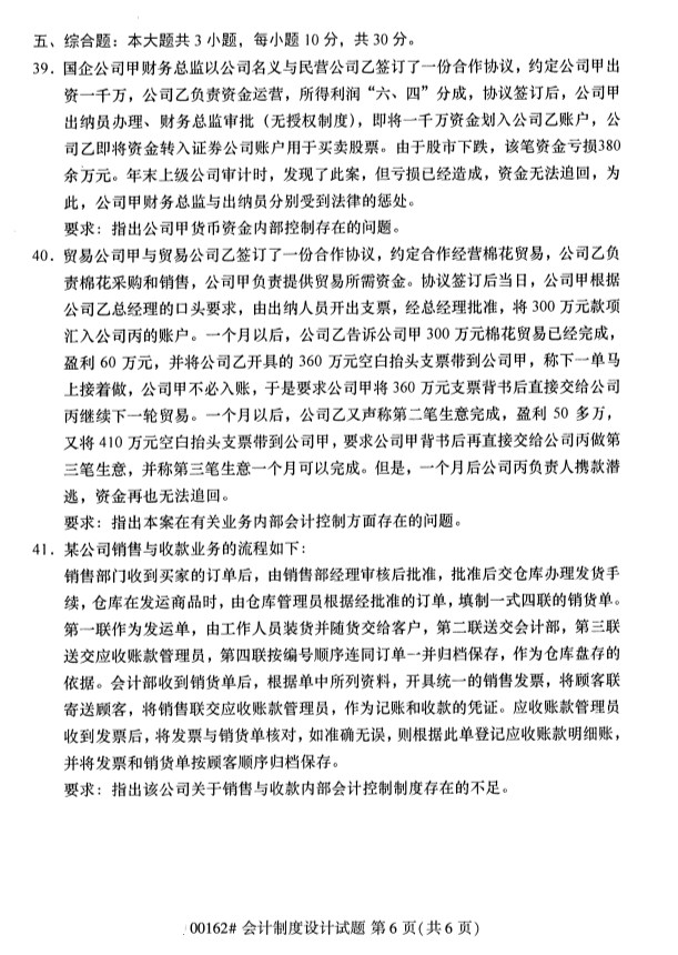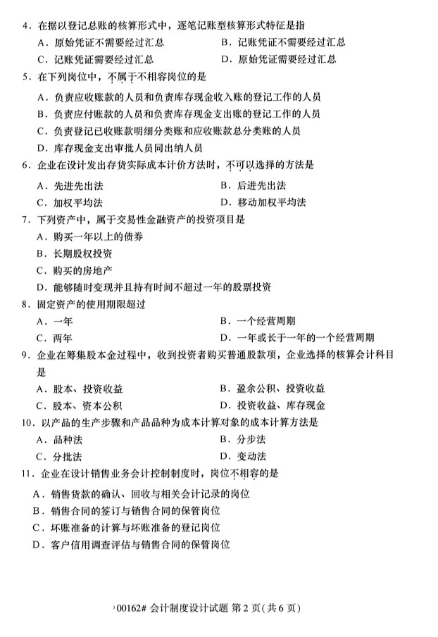 全国2019年10月自考00162会计制度设计试题