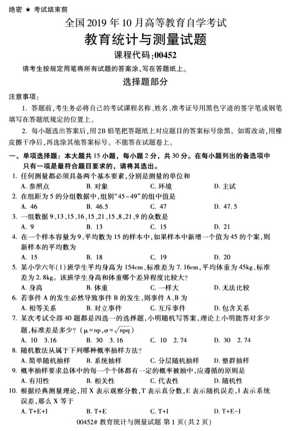 - 2510期15040完整版答案公布!(考生回忆版) 10-27