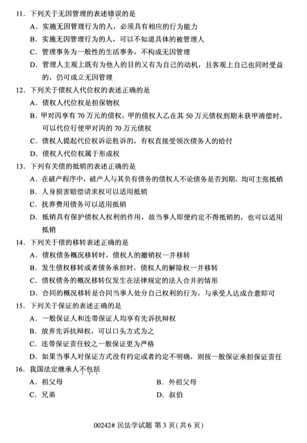 - 2510期00539古文史(二)答案公布!(考生回忆版) 10-27