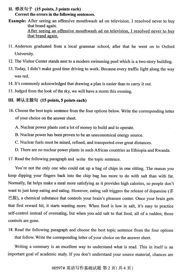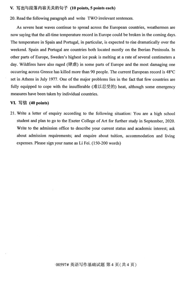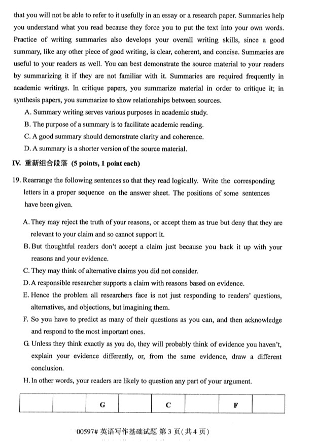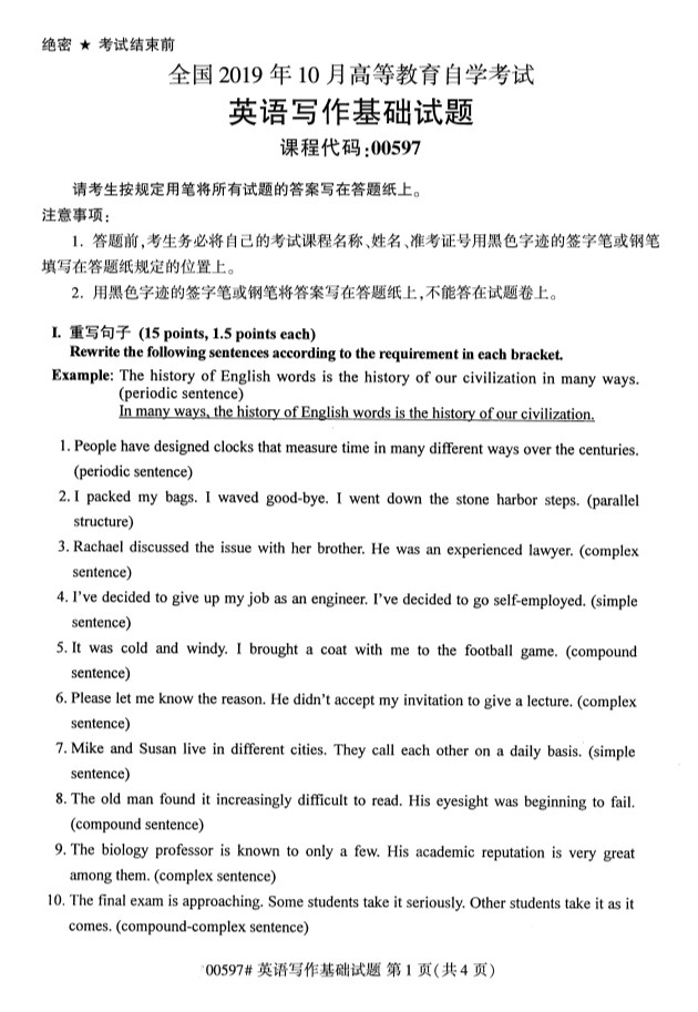 全国2019年10月自考00597英语写作基础试题
