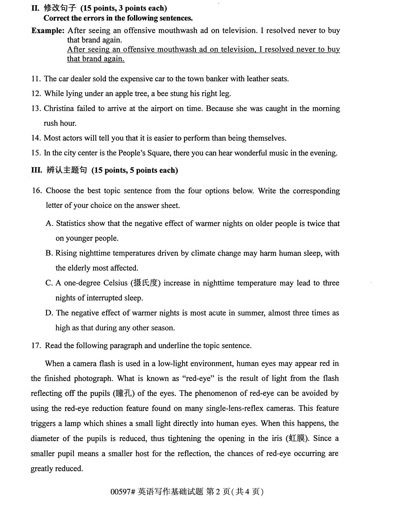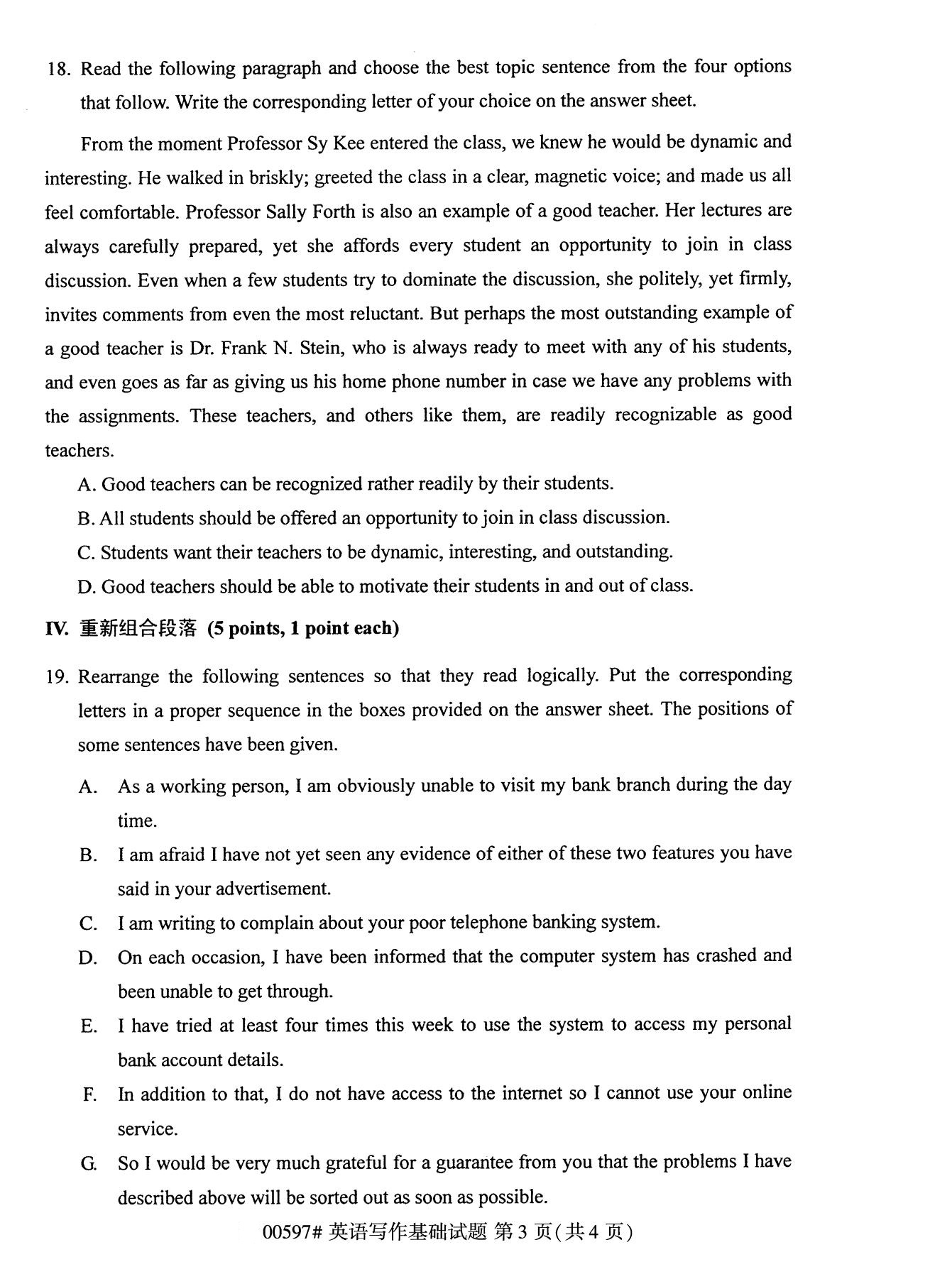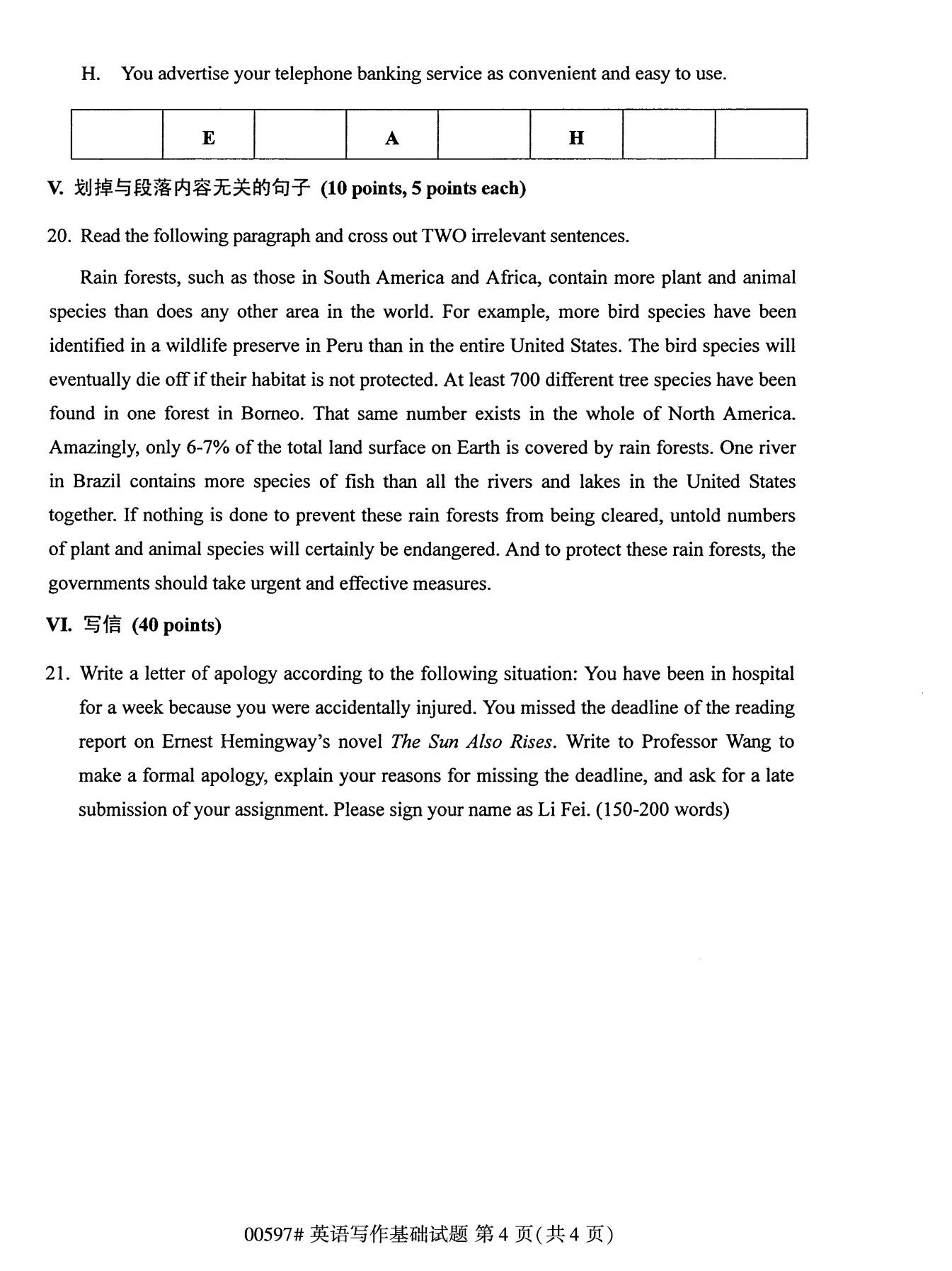 全国2020年10月自考00597英语写作基础试题