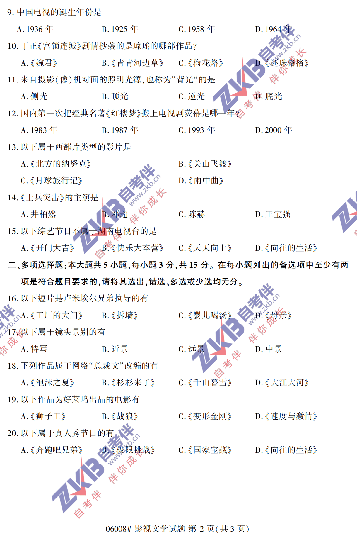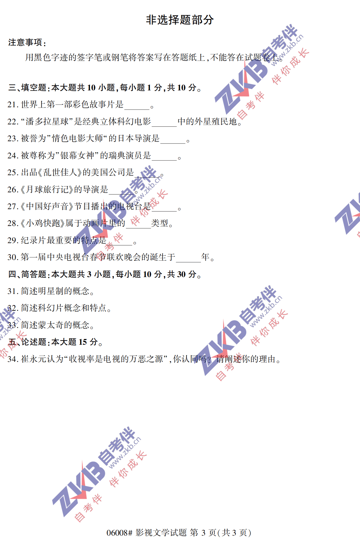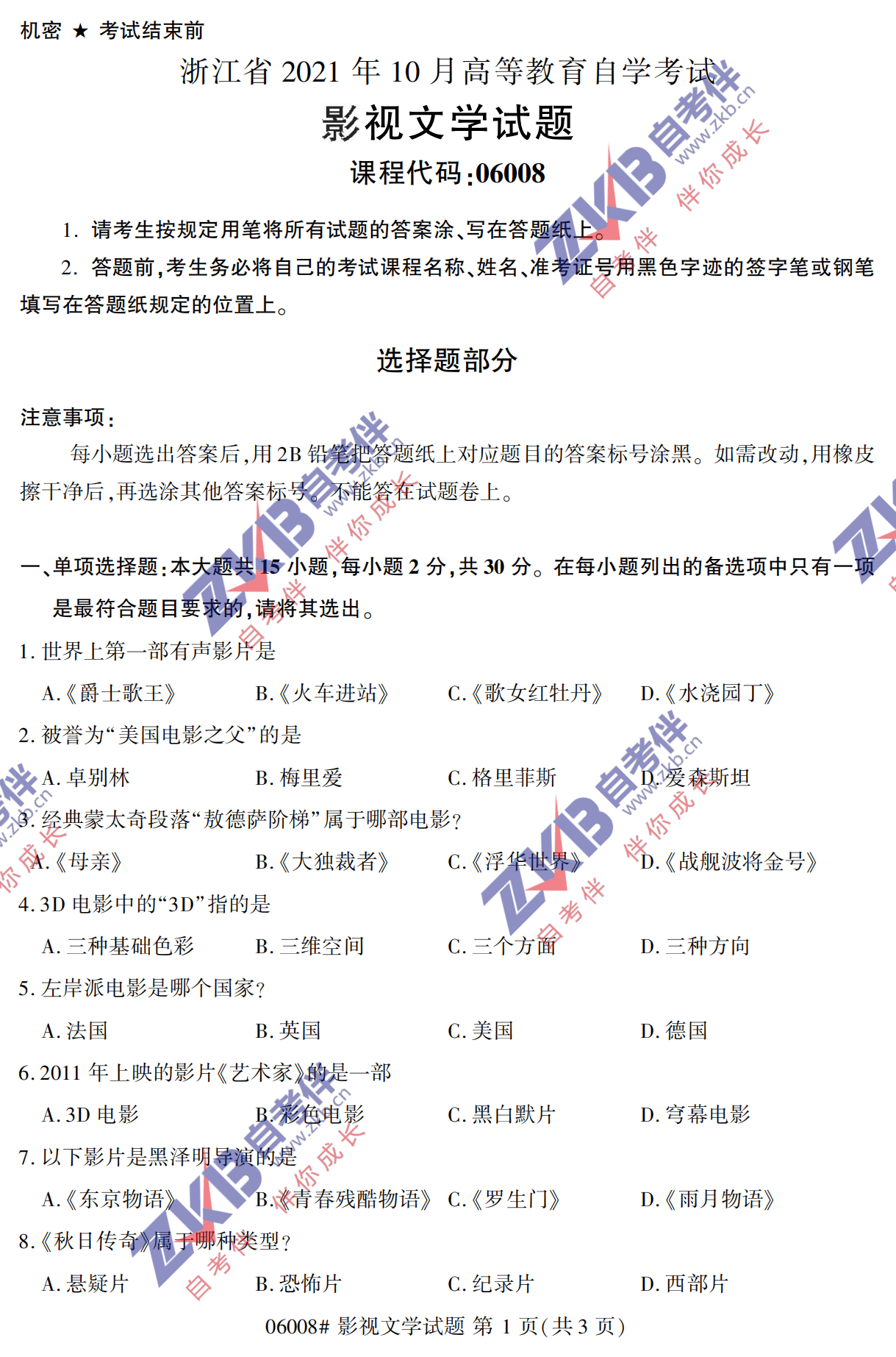 2021年10月上海自考06008影视文学真题试卷