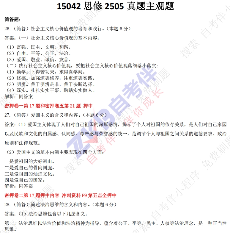 以上就是上海自考网为大家介绍的:2025年4月上海自考思想道德修养与法律基础真题答案(考生回忆版)的相关内容,想获取更多关于上海市自学考试的相关资讯,如上海自考报名时间、报考条件、成绩查询、自考专业、自考答疑等,敬请关注上海自考网。